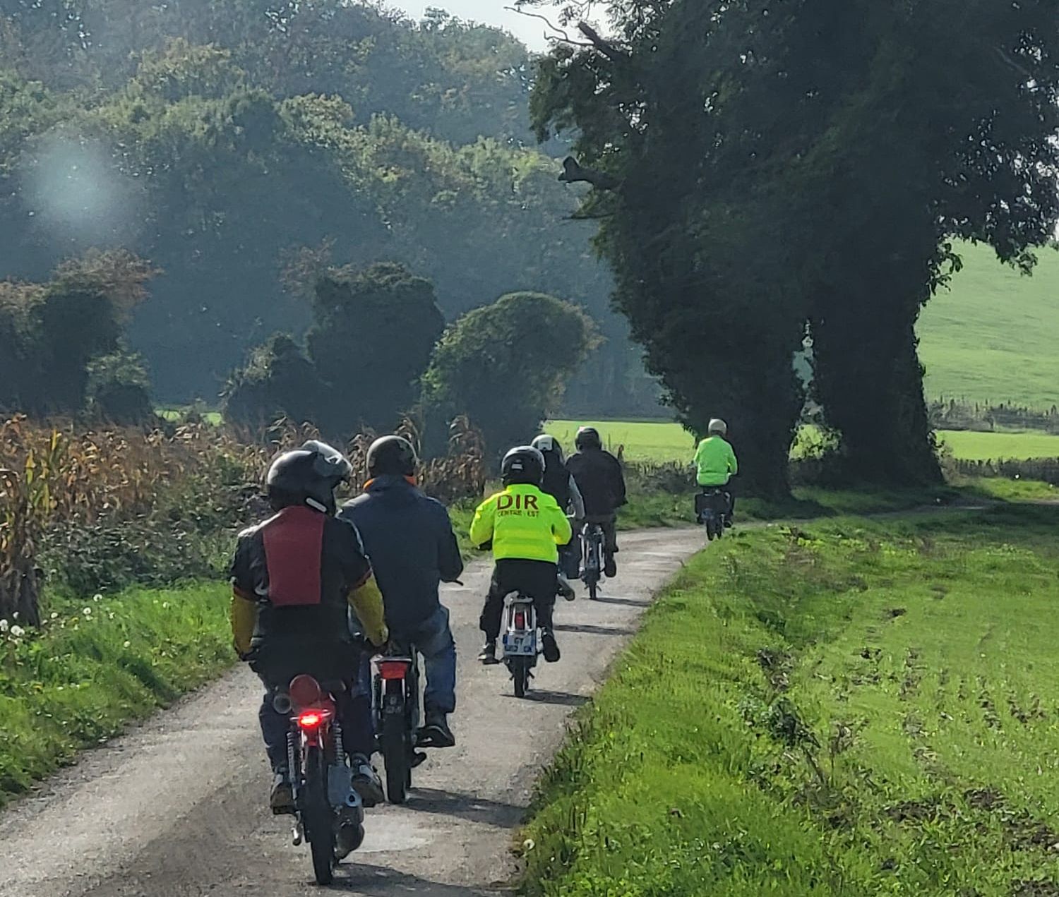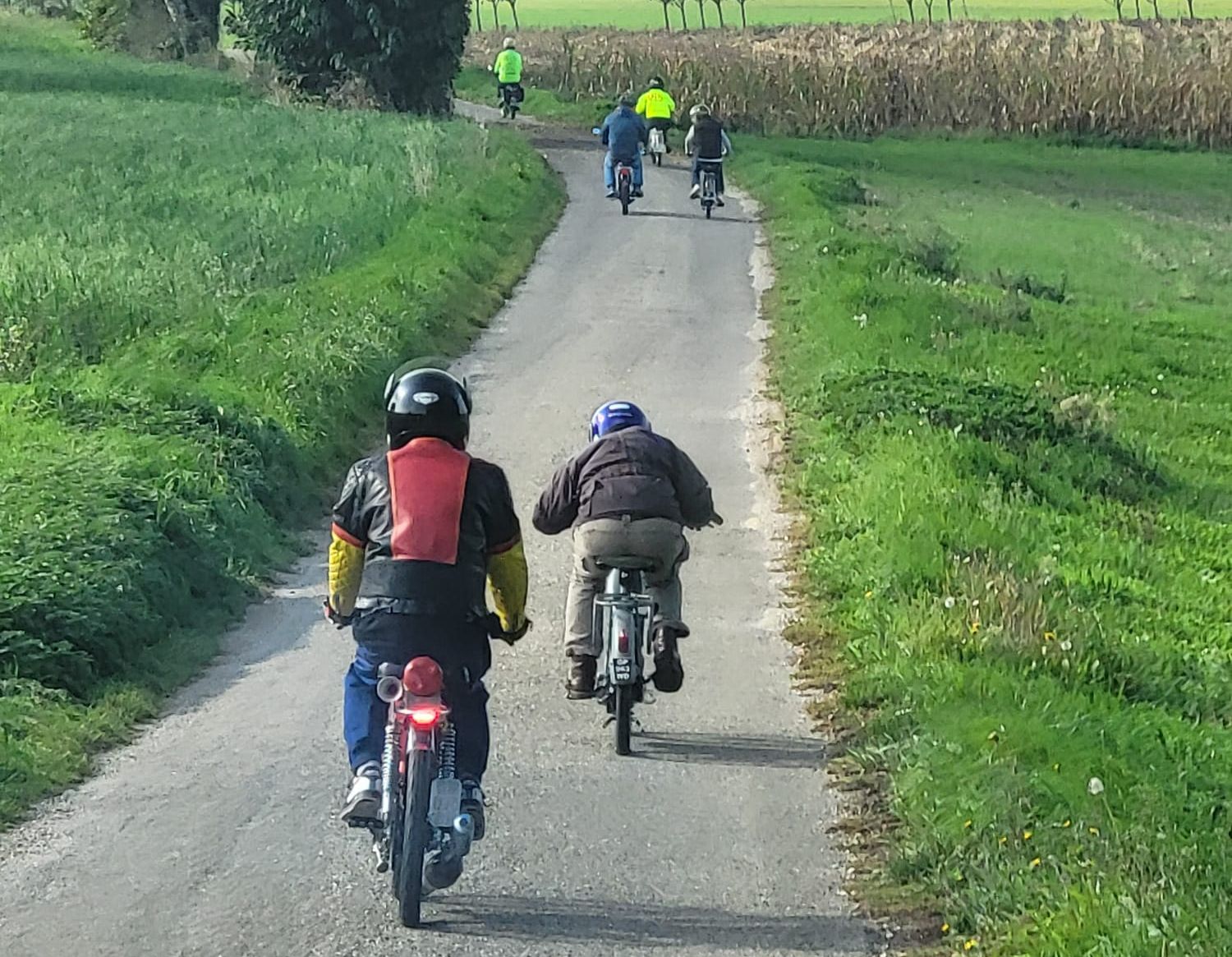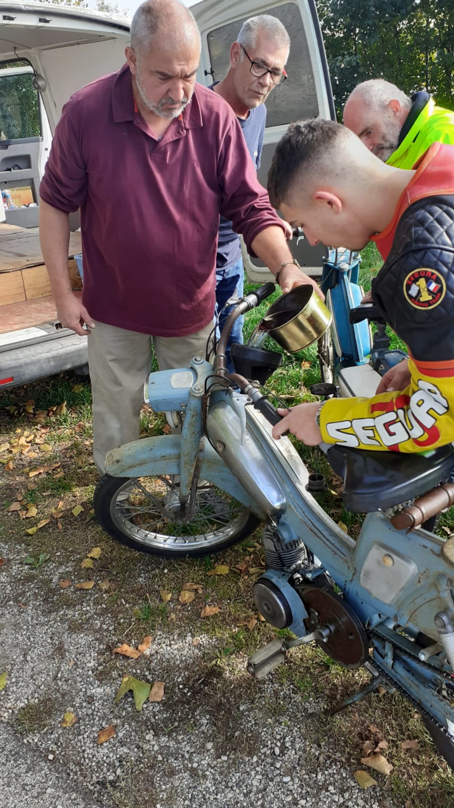 200 mètres, Stéphane perd une pièce de son plateau. Grace au véhicule d’assistance, son 103 est embarqué, il sera remplacé par une Motobécane . Le temps de transvaser l’essence, nous voici reparti. Les montées sont dures pour les plus vielle bécanes, et Elian pousse les plus poussives. On fait un détour pour le nouvel hangar de David, afin de déplacer la carrosserie de sa Cox. La montée de Vignieu est mortelle. On fini chez Alain, pour nous remettre de nos émotions. Nous sommes tous d’accord pour renouveler ce type de sortie.